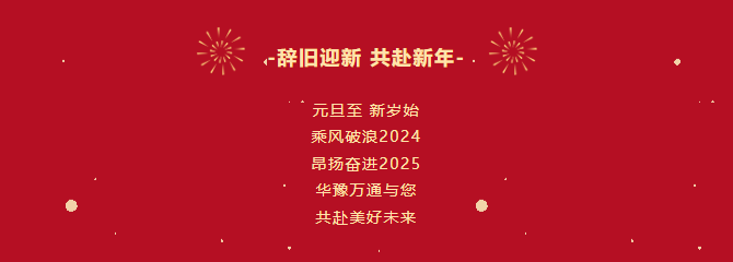 在2025年元旦到來之際,我謹代表華豫萬通公司,向關心和支持華豫萬通發展的各級領導和各界朋友、合作伙伴、廣大客戶,以及工作在一線的所有員工,致以誠摯的祝福和深深地感謝!未來之路,我們同行,把握趨勢,乘勢而上,聚勢共贏,馳騁未來。