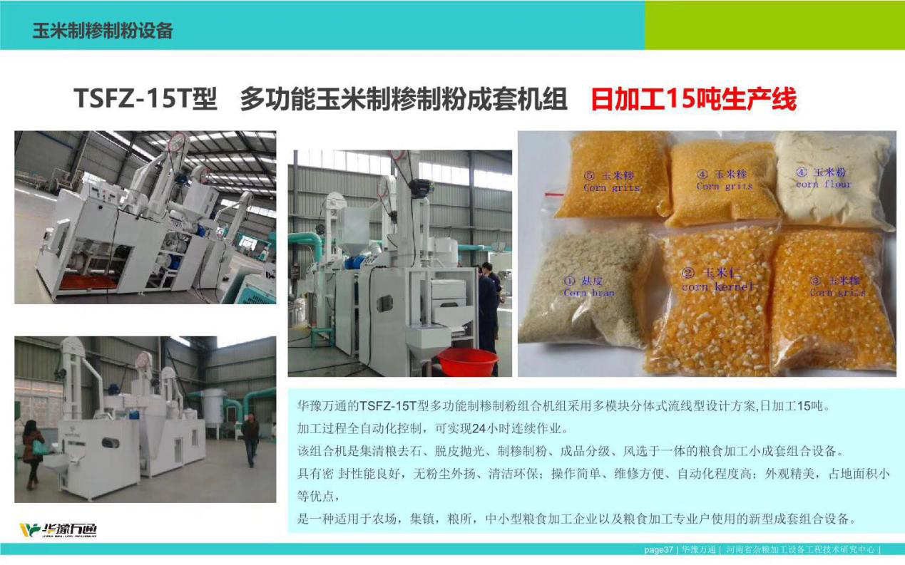 該系列玉米加工小機組主要由集清糧去石、著水調質、脫皮拋光、制糝制粉、成品分級、風選除雜和皮雜收集七部分組成。加工過程全自動化控制,可24小時連續作業;具有密 封性能良好,無粉塵外揚、清潔環保;操作簡單、維修方便、自動化程度高;外觀精美,占地面積小等優點;是一種適用于農場,集鎮,糧所,中小型糧食加工企業以及糧食加工專業戶使用的新型成套組合設備。