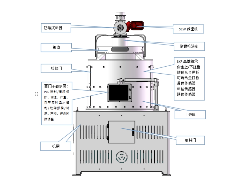 1. 智能進料防堵裝置:采用新型防堵結構設計,保證物料暢通不堵塞。